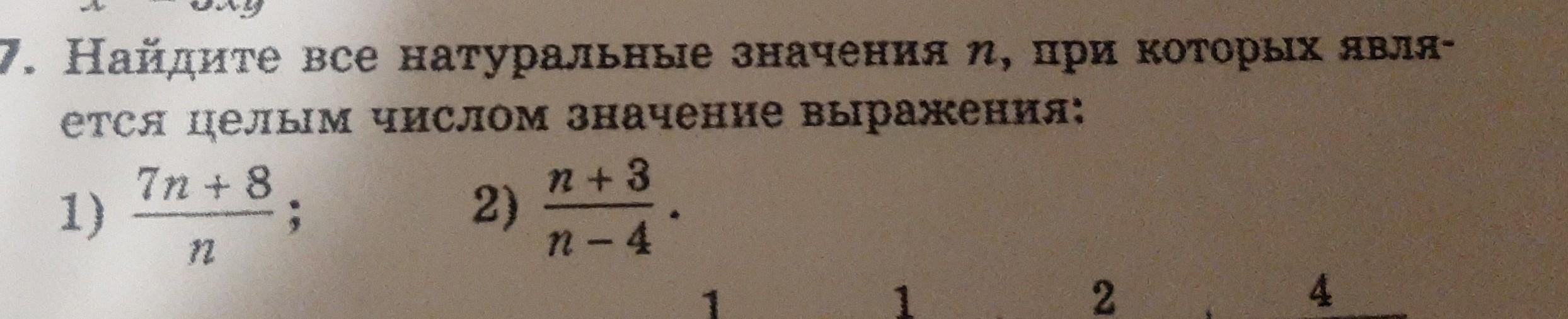 (7n+8)/n = 7 + 8/n При n = 1; 2; 4; 8 выражение (7n+8)/n целое число