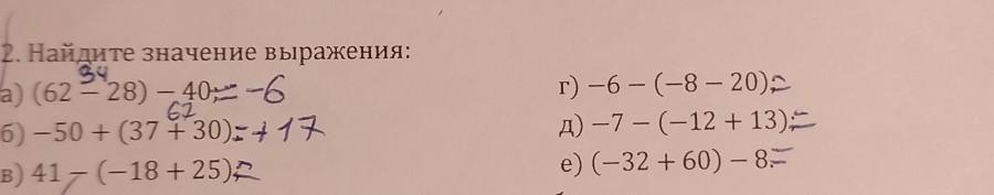 е) (-34+60)-8= 20