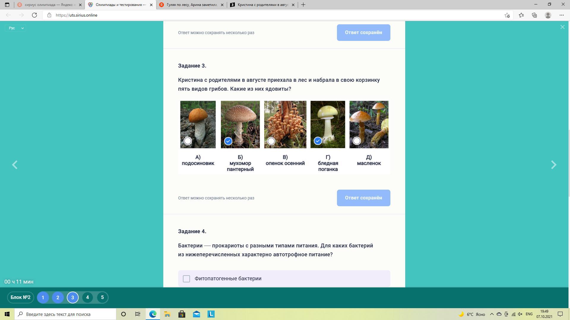 Кристина с родителями в августе приехала в лес и набрала в свою корзинку пять видов грибов. Какие из них ядовиты?