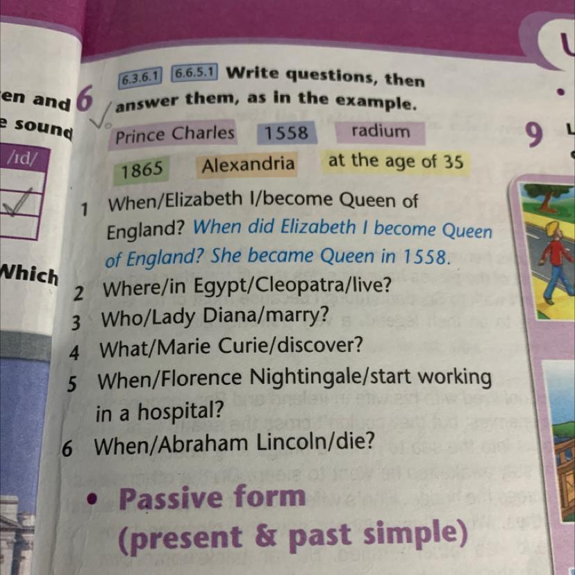 6) When did Abraham Lincoln die? He died in 1865.2) Where in Egypt did Cleopatra live? She lived in Alexandria.