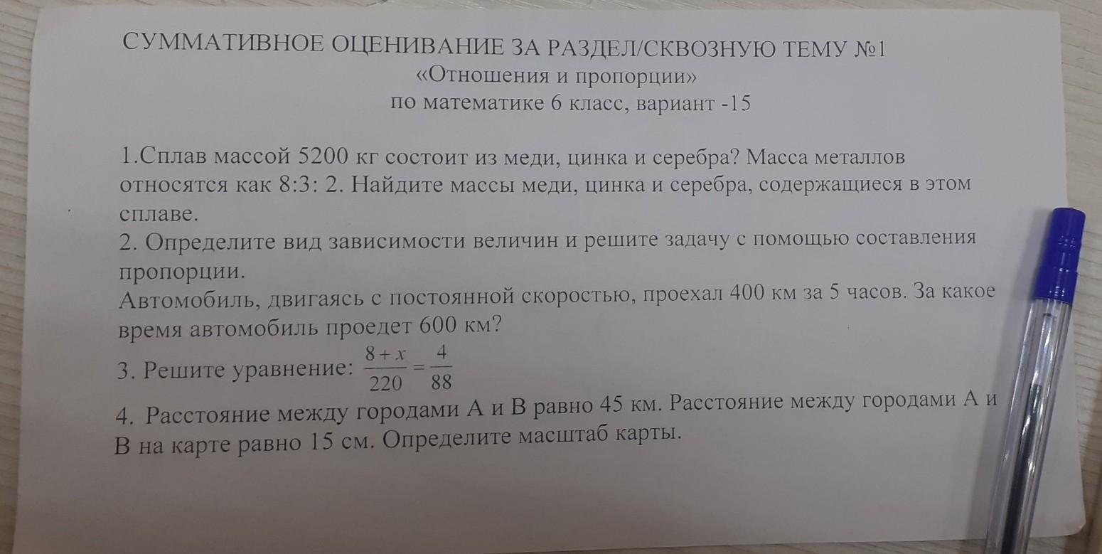 пропорции. Автомобиль, двигаясь с постоянной скоростью, проехал 400 км за 5 часов, За какое время автомобиль проедет 600 км?