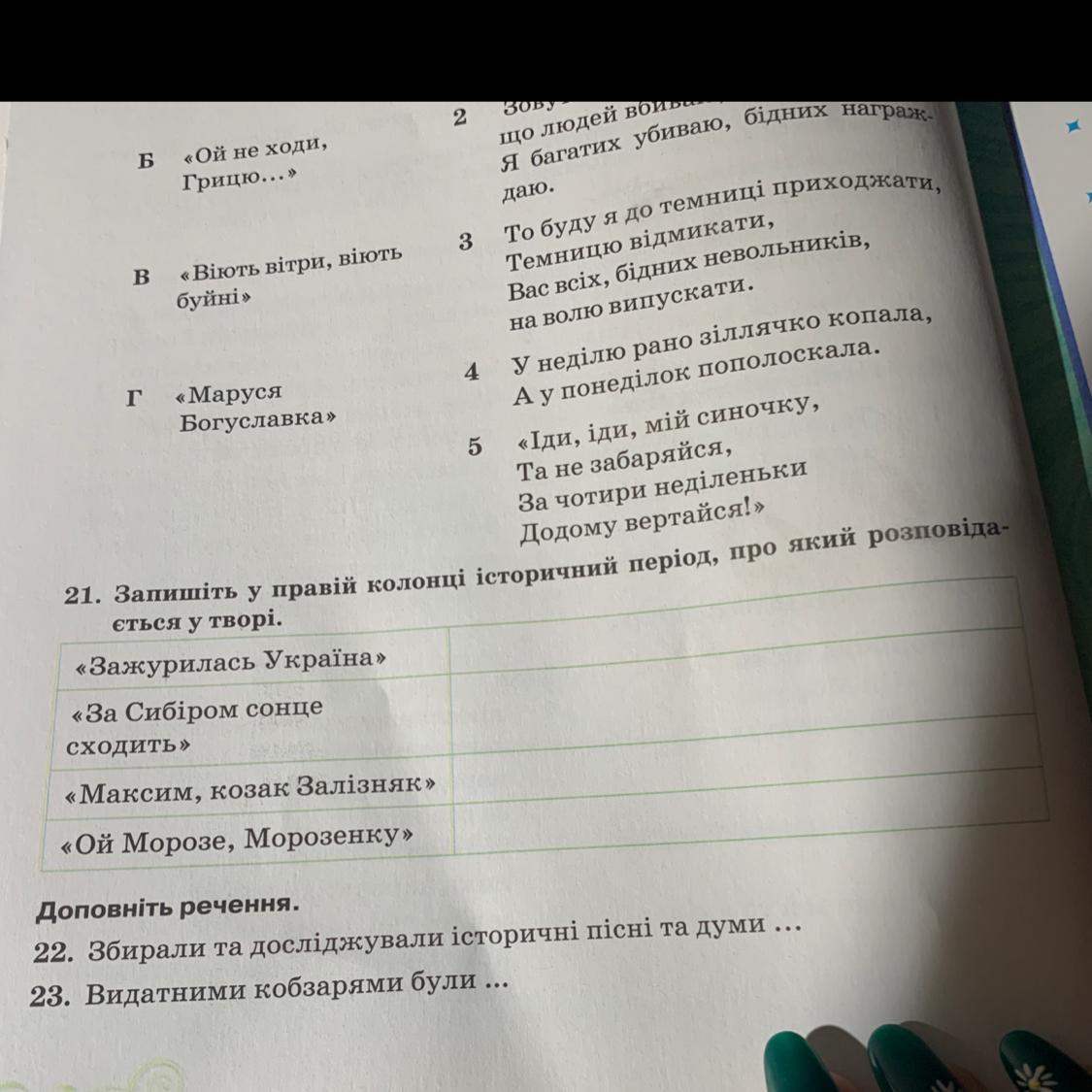 - Ответ:ъЗажурилась Україна» — історична пісня, аналіз якої подано в цій статті. Записано пісню в середині ХІХ ст. в Новомосковському повіті Катеринославської губернії.