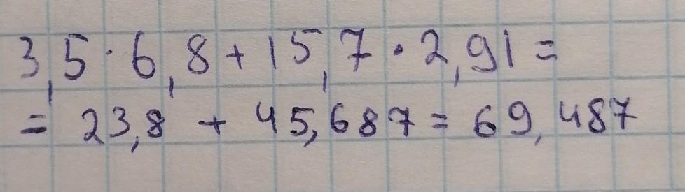 3.5 * 6.8 +15.7 *2.91= 23,8+45,687=69,487
