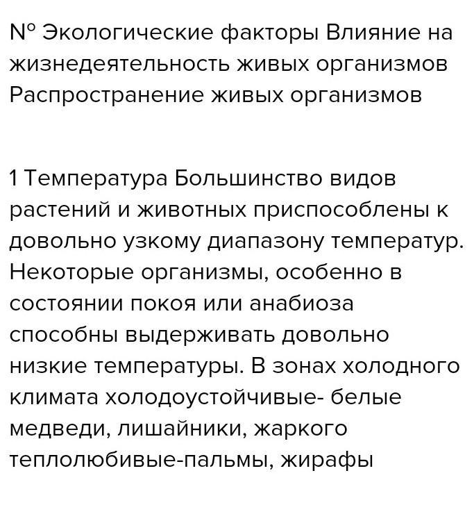 Предскажите, как перечисленные в таблице экологические факторы влияют на жизнедеятельность и
