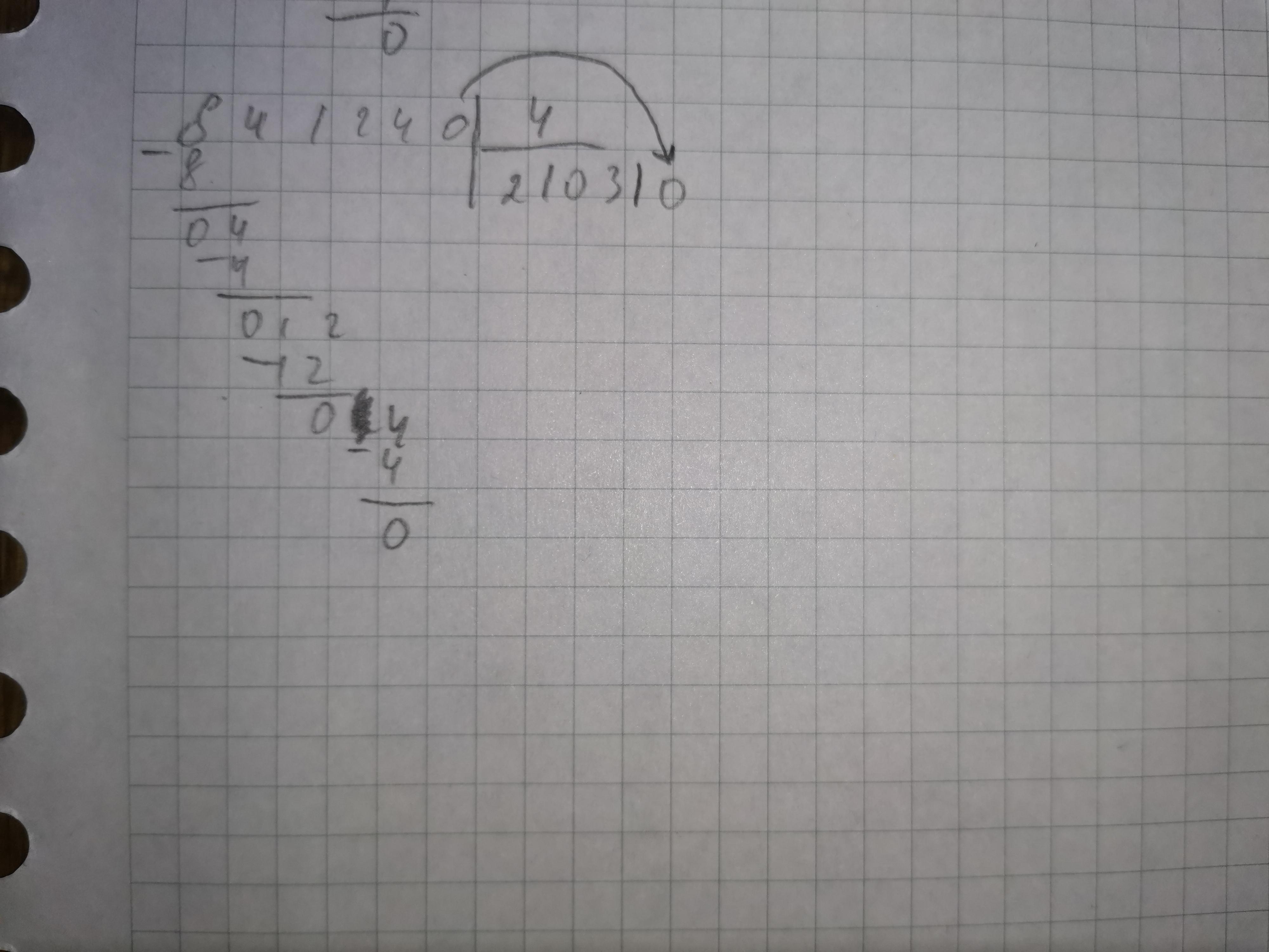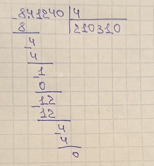 1. Смотрим на первую цифру - 8, она делится на 4 => делим 8 на 4 и получаем 2 => записываем 2 в ответ как 1 цифру результата
