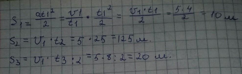 в течение 25 с. На третьем участке (торможение) автобус за 8 с останавливается. Определи путь, пройденный