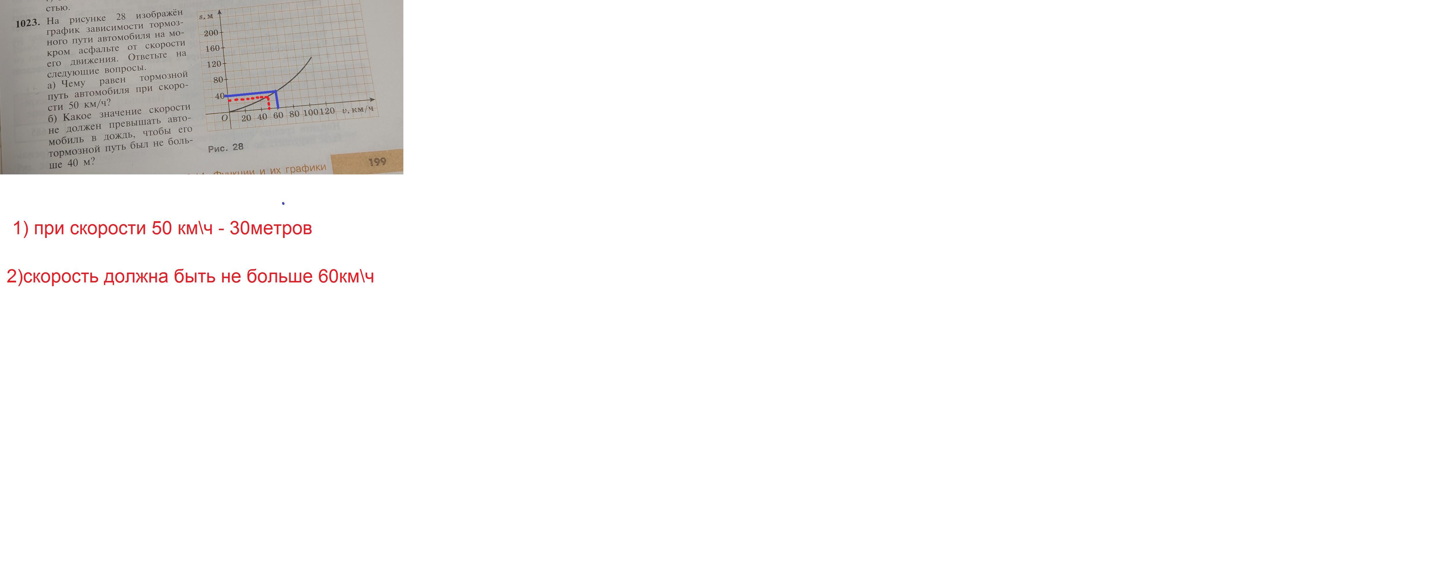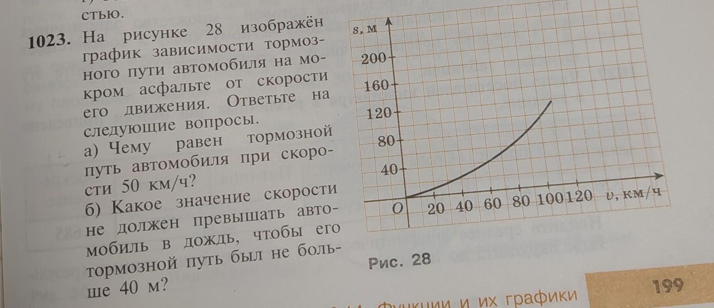 на рисунке 28 изображён график зависимости тормозного пути автомобиля на мокром асфальте от скорости его движения. Ответьте следующие вопросы.