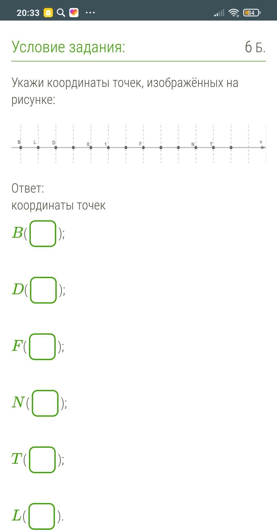 В(-4) ; D(-2) ; F(3) ;N(6) ; T(7); L(-3)