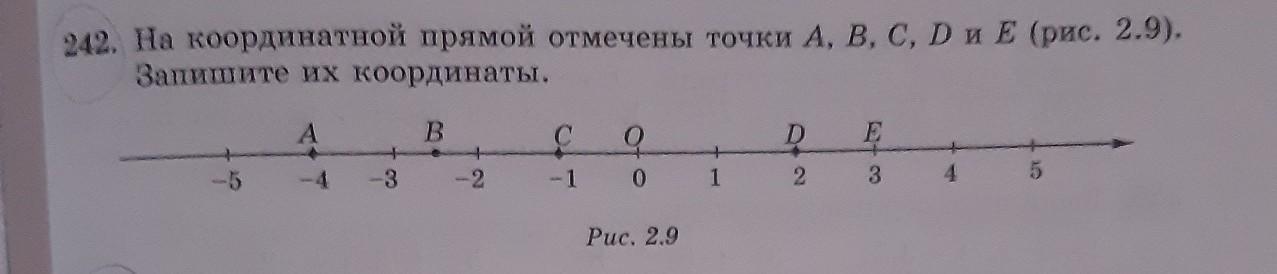 а-(-4) в-(-2.5) с-(-1) о-(0) D-(2) E-(3)
