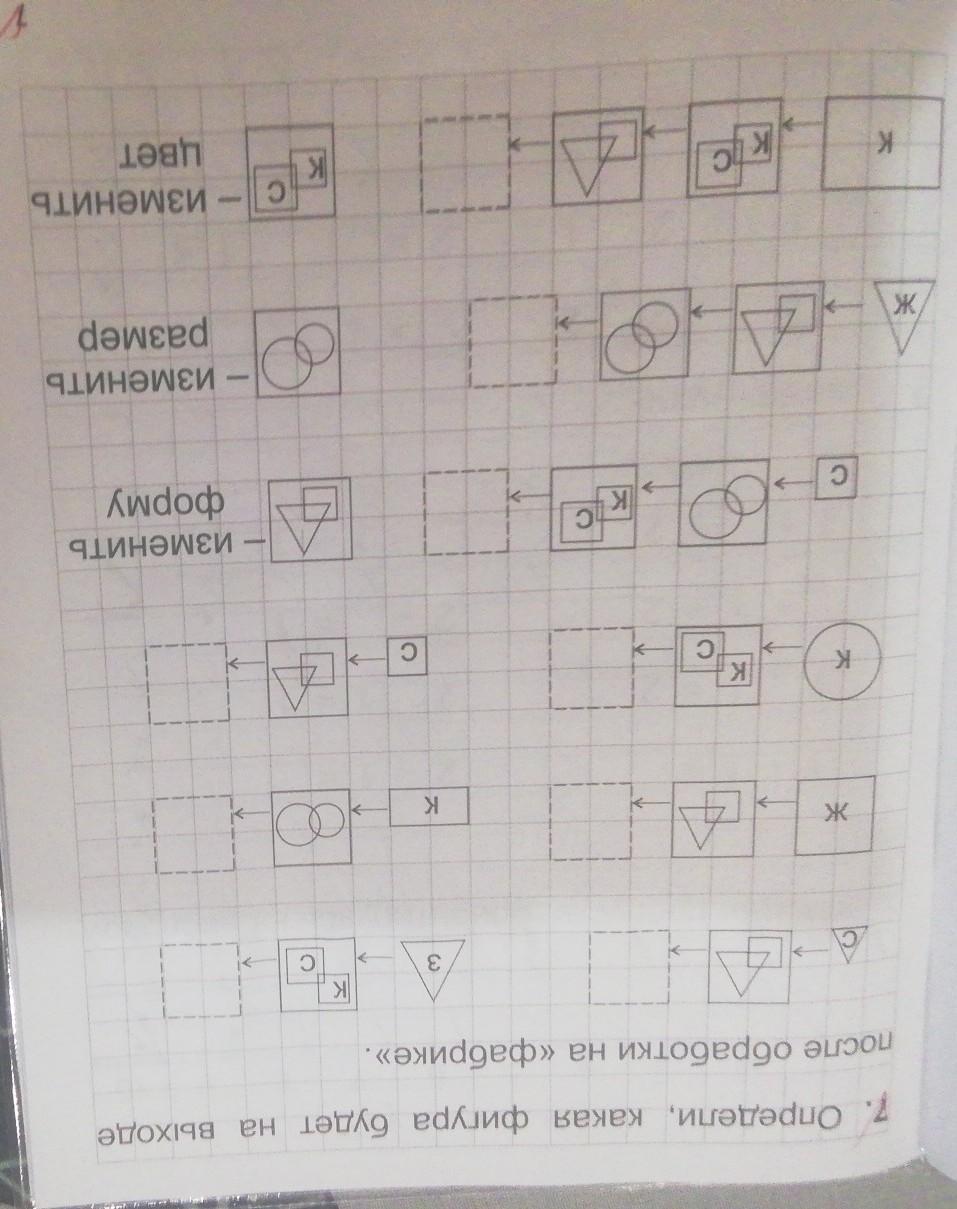 Определи, какая фигура будет на выходе после обработки на фабрике