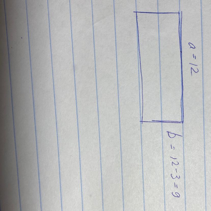 Ну длина 12. Ширина на 3 меньше значит 12-3=9