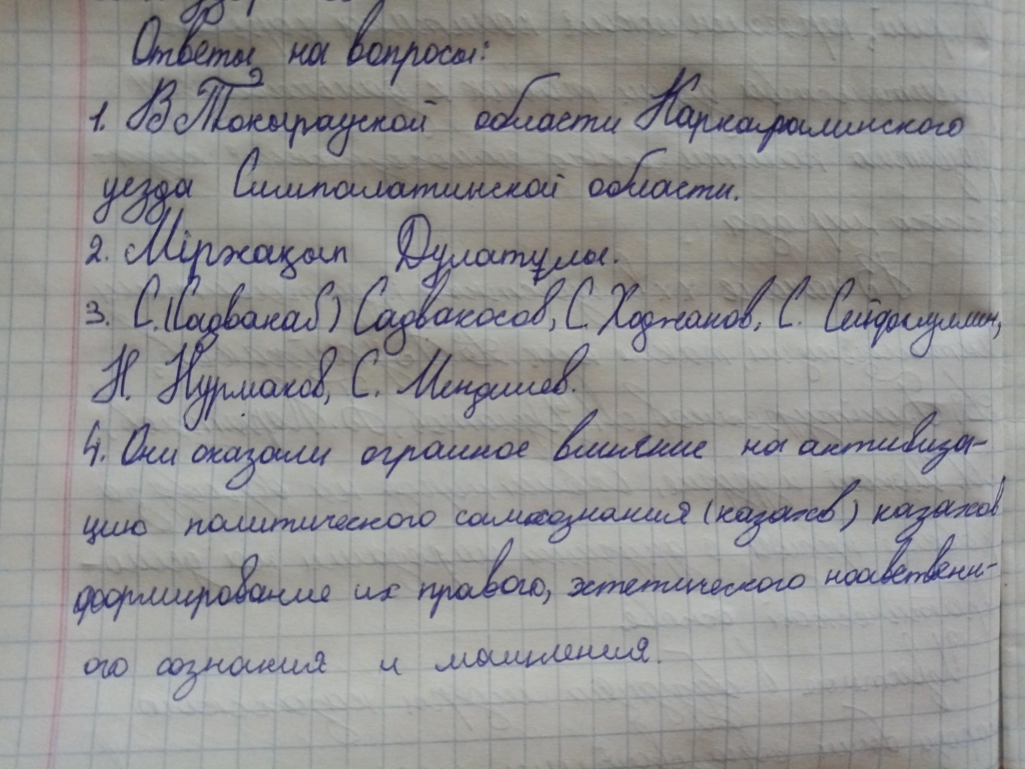 3. Назовите одного из деятелей, выступившего против Ф. Голощекина? 4. Охарактеризуйте вклад и роль казахской интеллигенции в жизни казахского общества? помогите плиз срочно!!!☺️
