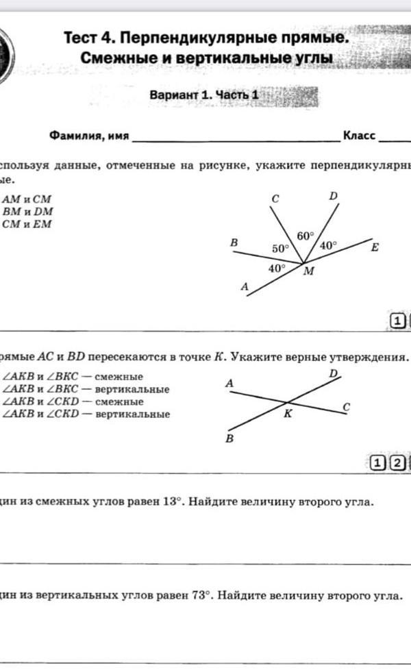 4.)Вертикальные углы равны