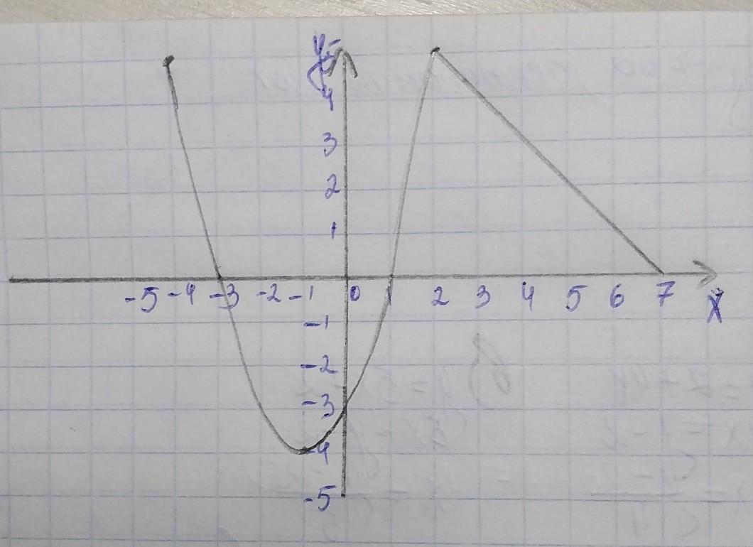Функция спадает: (- бесконечность; -1], [2;+ Бесконечность)