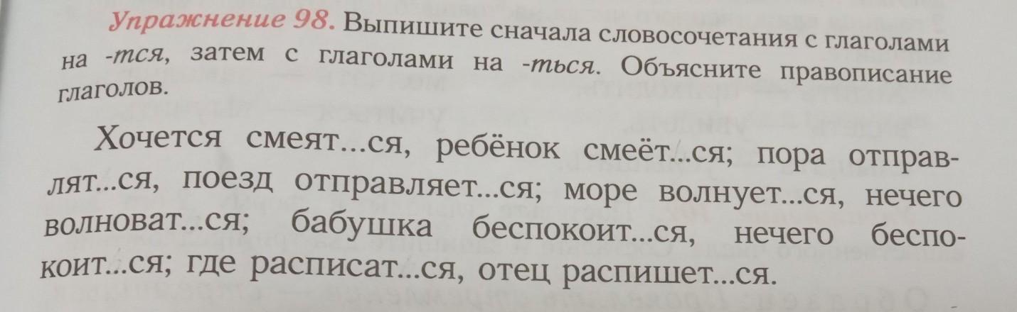 -ться: смеяться, отправляться, волноваться, нечего беспокоиться, расписаться