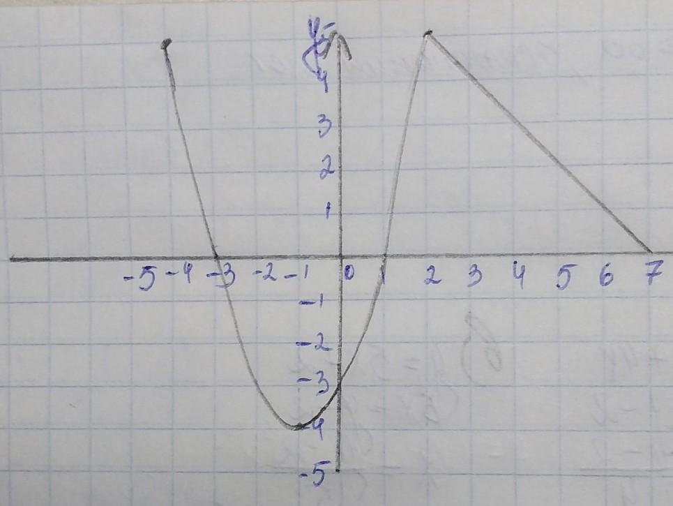 График функции убывает на отрезках [-4; -1] и [2; 7], т.к. на этих отрезках большему значению аргумента соответствует меньшее значение функции.