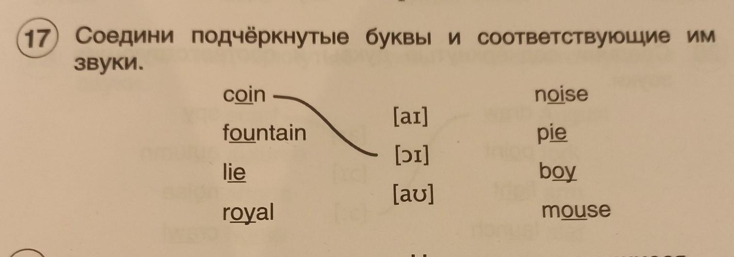 Пожалуйста ответь быстро Англиский язык Соедини подчёрктнутые буквы и соответствующие им звуки.