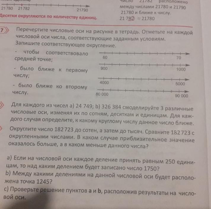 Перечертите числовые оси на рисунке в тетрадь. Отметьте на каждой числовой оси числа, соответствующие заданным условиям. Запишите соответствующее округление. числам 5 класс