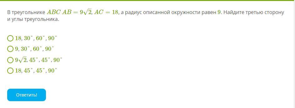 ВС = √(18² - (9√2)²) = √(324 - 162) = √162 = 9√2.