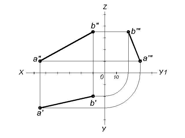 Построить горизонтальные и фронтальные проекции точек А и В(отрезка АВ) по их заданным координатам: А(55,30,10) B (10,20,35)