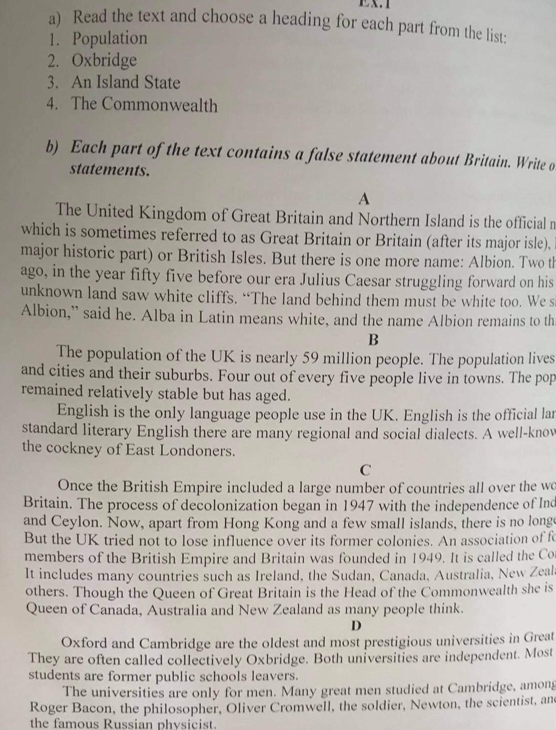 б) Каждая часть текста содержит ложное утверждение о Великобритании. Напишите o