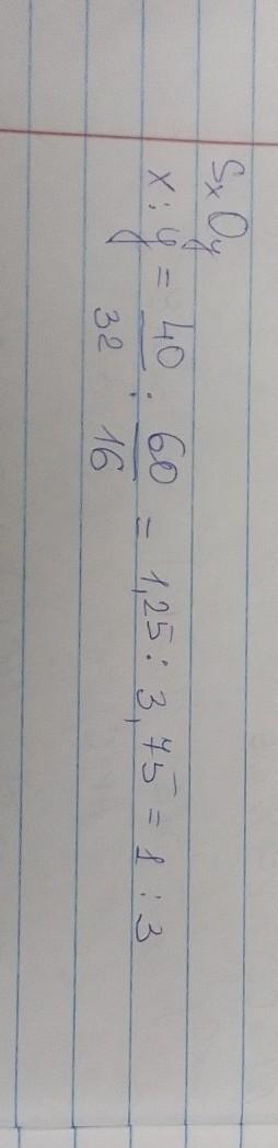 2. Выведите химическую формулу соединения, если известно, что массовая доля серы составляет 40%, кислорода 60%.