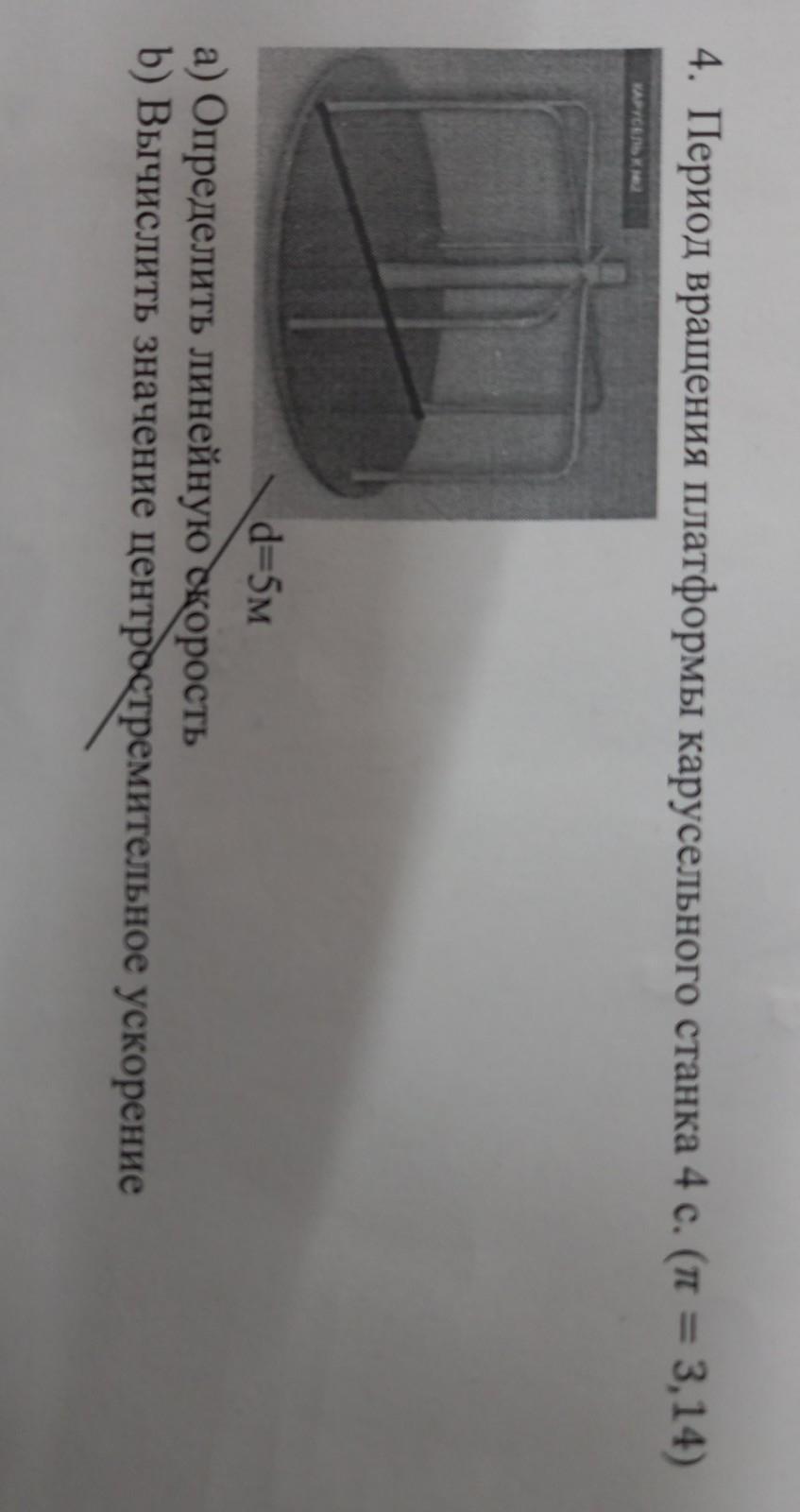 V=π*d/T=3.14*5/4≈3.93 м/с