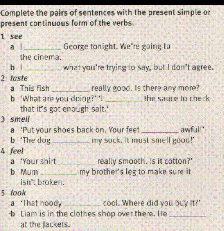 3 a - smell (пахнут/воняют), b - is smelling (нюхает)