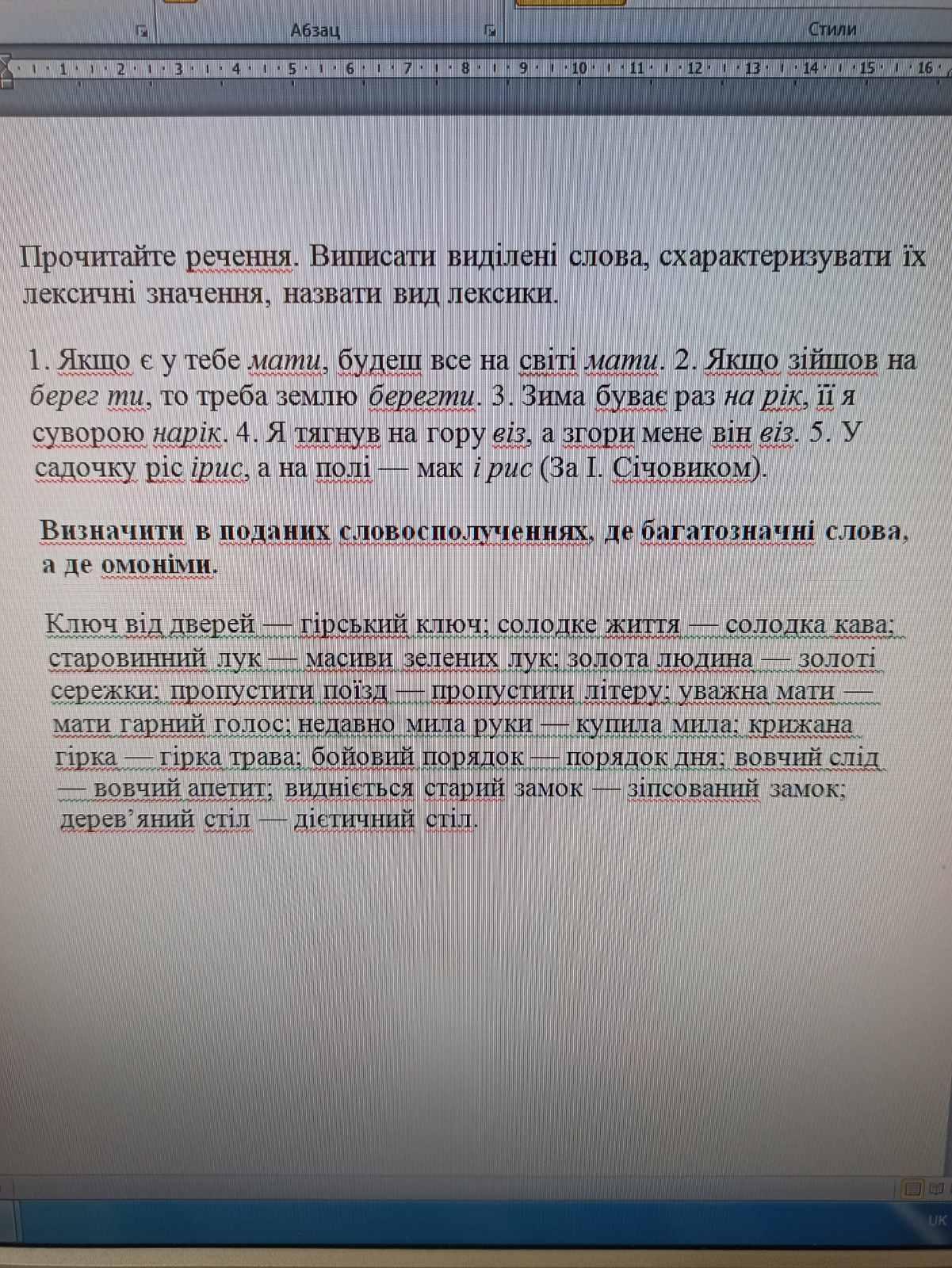 ключ, лук, золота, солодке, мати, мила, гірка, порядок, вовчий, замок, стіл - всі багатозначні