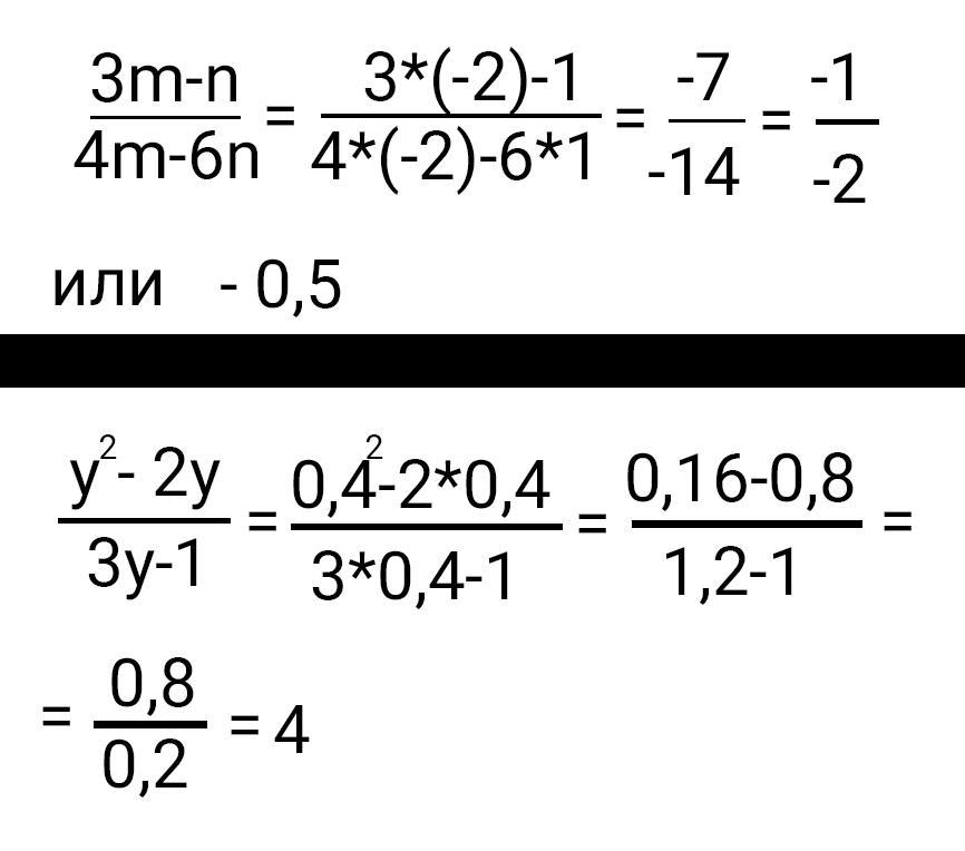 Объяснение: Просто в первом примере вместо букв m и n подставляете значение которое дано, а во втором вместо y и решаете пример.