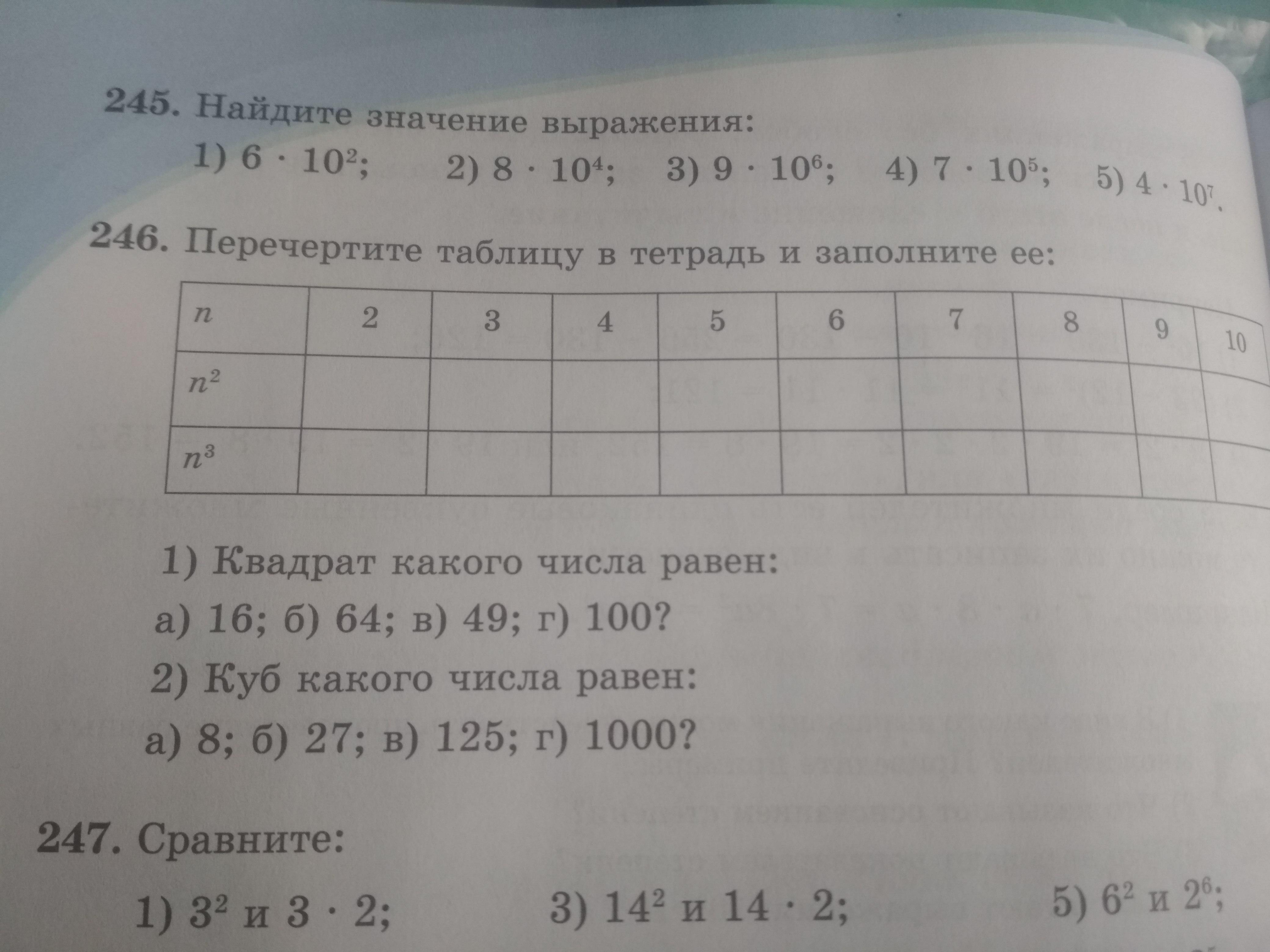 246. Перечертите таблицу в тетрадь и заполните её