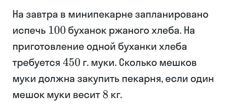 45 : 8 = 5 мешков муки нужно на 100 буханок