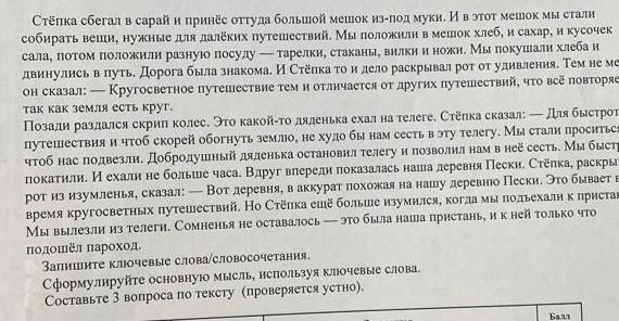 Запишите ключевое слова/ словосочетания сформулите основную мысль , используя ключевые слова состав 3 вопроса по тексту
