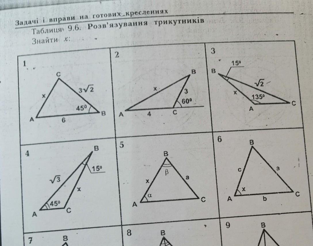 х^2=6^2+(3×2^(1/2))^2-2×6×3×2^(1/2)соs45=36+18-36=18
