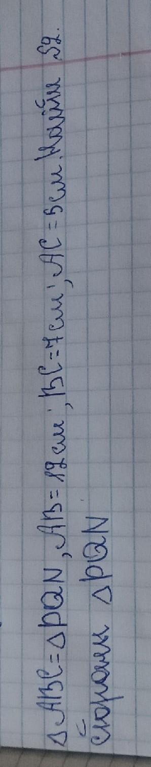 ️ ABC=️ PQN, AB=17см,ВС=7см,АС=5см найти s2 стороны ️PQN