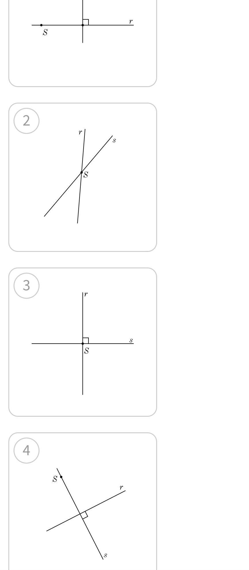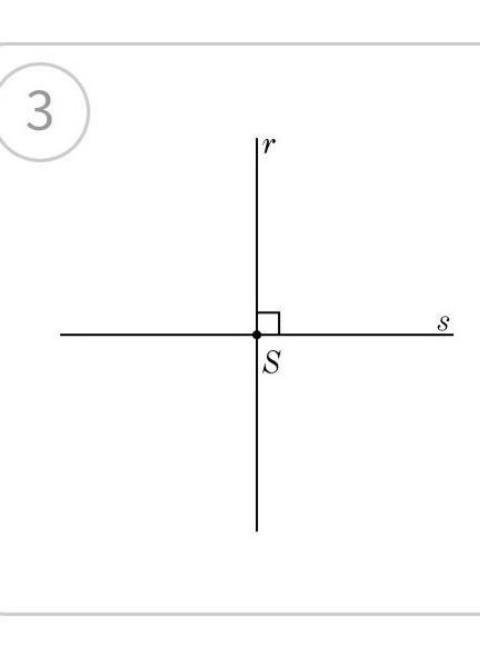 Выбери рисунок, на котором построена прямая r перпендикулярная прямой ss и проходящая через точку S, лежащую на прямой s