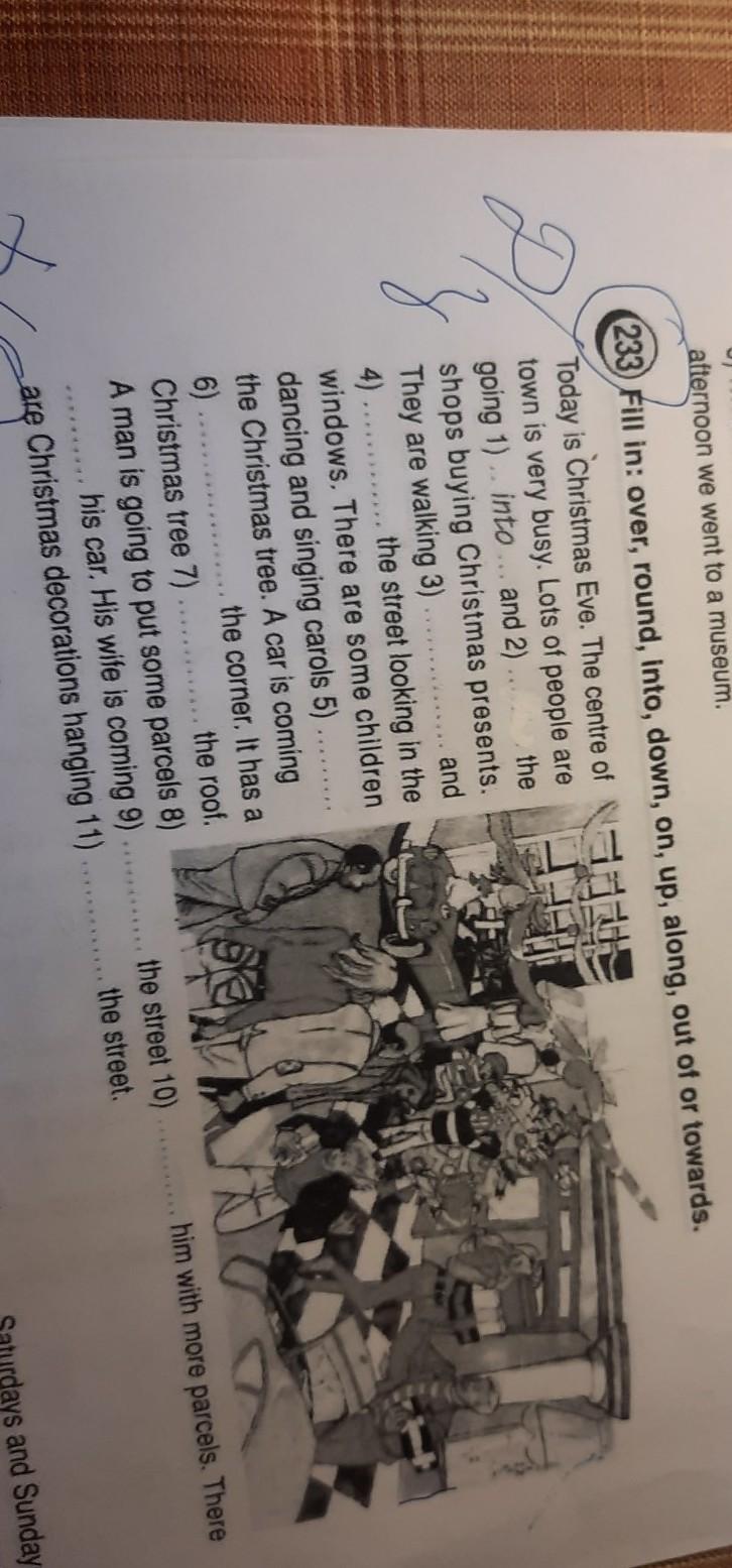 2)round 3)out of or towards 4) along 5)over 6)down 7)on 8)on 9)up 10)round 11)along