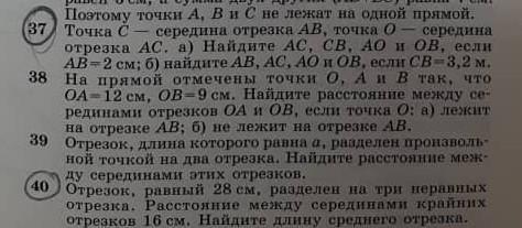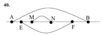 Решение к 40 заданию. Пусть отрезок АВ равен 28 см, а точки С и D делят его на три неравных отрезка: AC, CD и DB (рис. 17). Пусть точка М — середина отрезка АС, точка N — середина отрезка BD. Тогда АВ = АС + CD + DB, поэтому