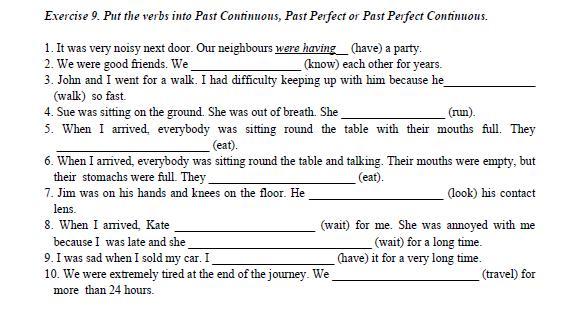 8. Kate was waiting for me./ I was late and she had been waiting for a long time.