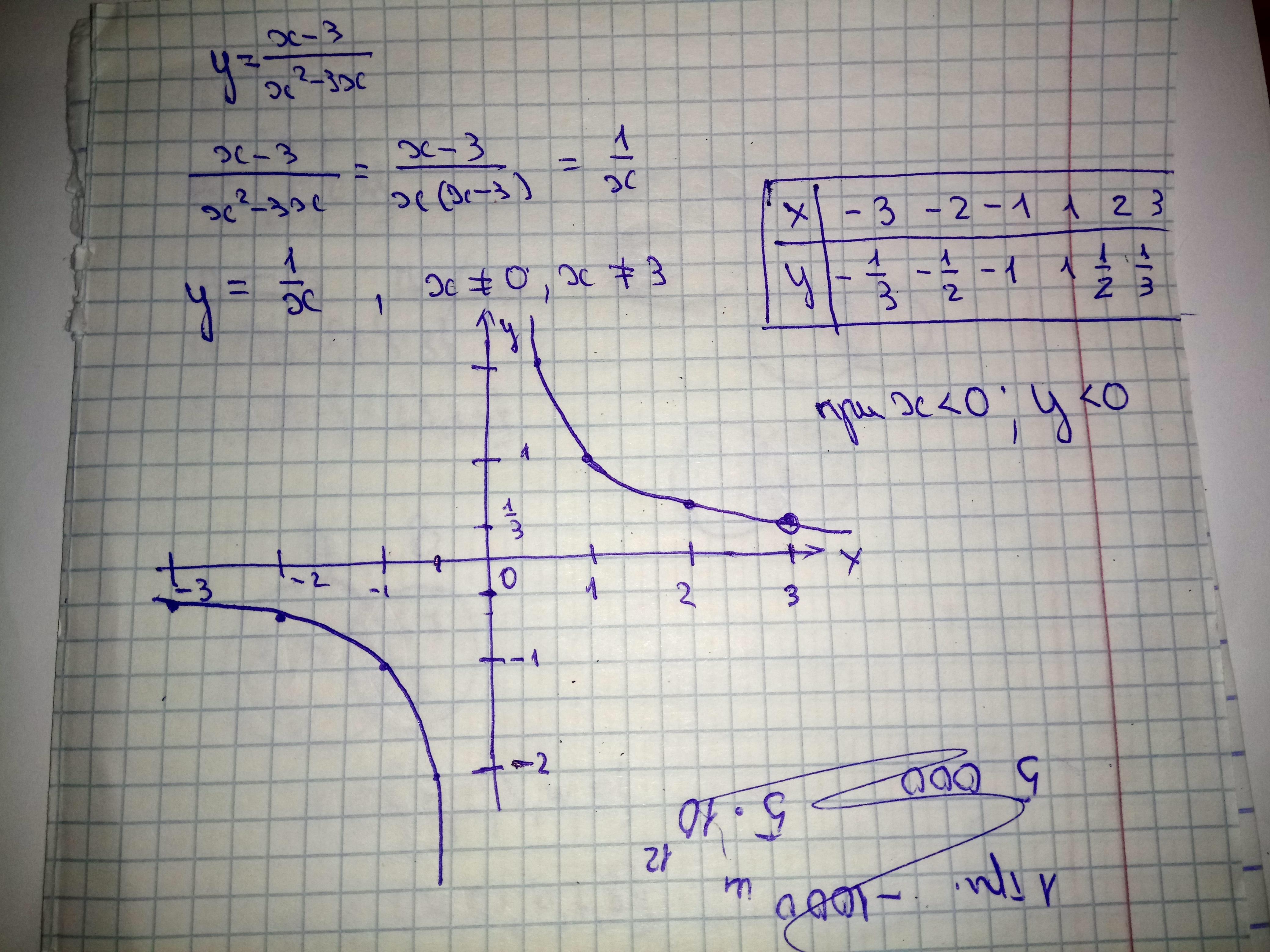 постройте график функции y=x-3/x^2-3x. Прикаких значениях аргумента значения функции отрицательны?