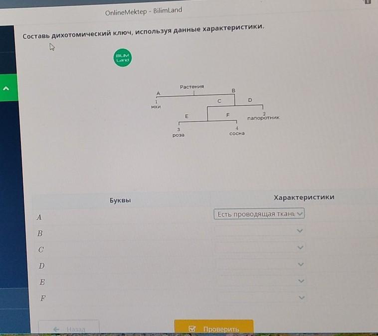 Составь дихотомический ключ, используя данные характеристики