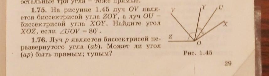 По условию задачи ∠ ZOV =∠VOY, ∠YOU =∠UOX, поэтому