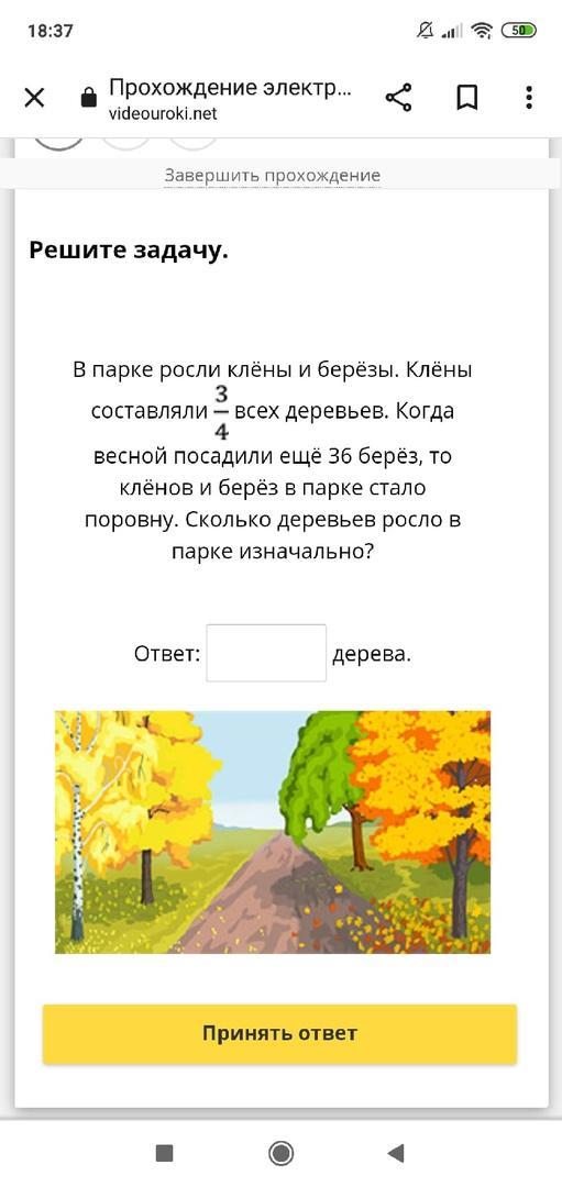 клёны к берёзам как 1:4. 36=3 части.