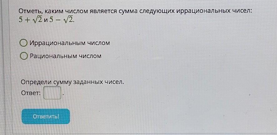 ⇒ сумма приведённых иррациональных чисел является рациональным числом.