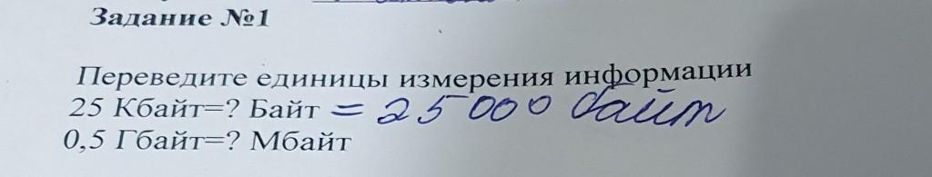 25 Кбайт = 25 × 1024 = 25600 байт