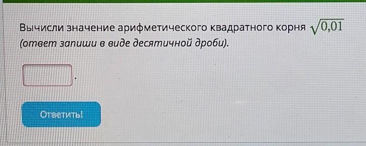 √0,01=0,1 потому что 0,1²=0,1*0,1=0,01