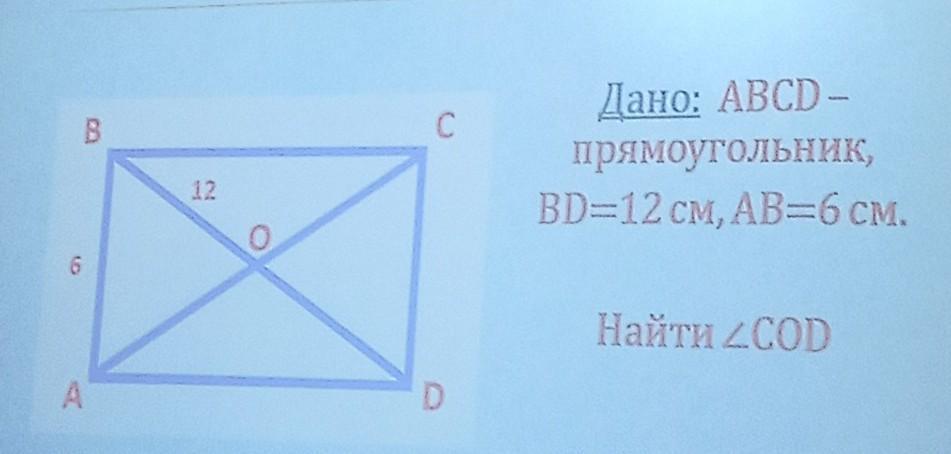 Ho CD = 6 CM => OC-OD-CD=6 CM => ACOD - равносторонний => <COD=ZCDO =ZODC => <COD = 60°