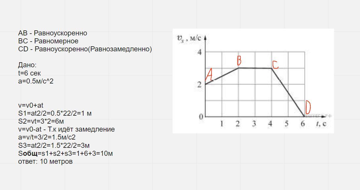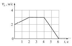 На графике изображена зависимость проекции скорости тела от времени. Найдите пройденный путь за 6 с. Определите на каждом участке вид движения.