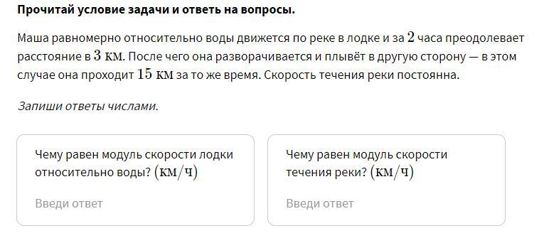 2. Чему равен модуль скорости течения реки? (км/ч)(км/ч)