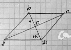 3. диагонали ромба точкой пересечения делятся пополам ⇒ BO=OD=4